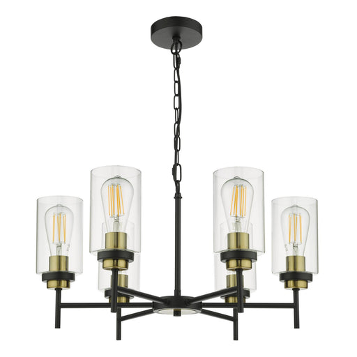 View full detailsDar Lighting Abel 6 Light Pendant Satin Black & Gold with Glass Shades • ABE0654