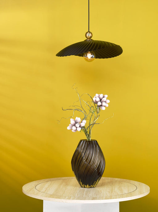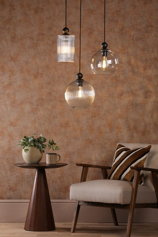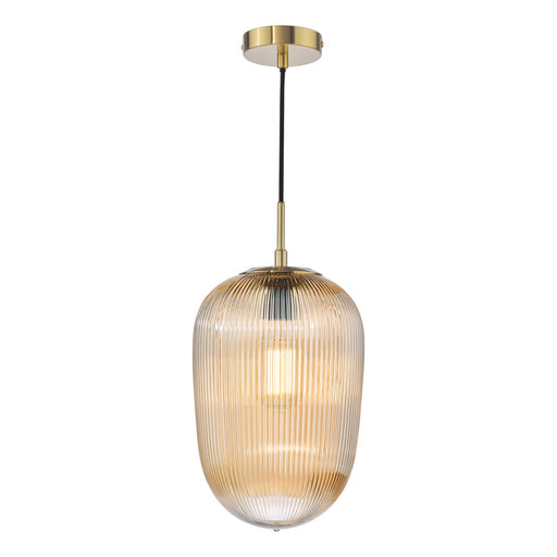 View full detailsDar Lighting Abrielle Pendant Brushed Bronze and Amber Ribbed Glass • ABR0106