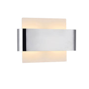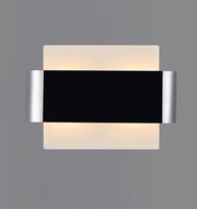 Damo is a modern flush wall luminaire with a unique design concept available in four colour finishes; polished chrome, antique brass, black chrome and satin nickel. The two G9 lampholders are diffused by a frosted opal backplate. The prominent feature is the band of metal framework that is layered across the centre of the plate.