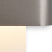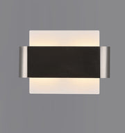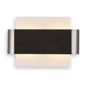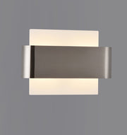 Damo is a modern flush wall luminaire with a unique design concept available in four colour finishes; polished chrome, antique brass, black chrome and satin nickel. The two G9 lampholders are diffused by a frosted opal backplate. The prominent feature is the band of metal framework that is layered across the centre of the plate.