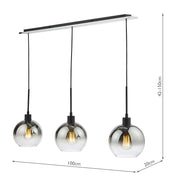 Dar Lighting Lycia 3 Light Bar Pendant Matt Black Ombre Smoked Glass • LYC0322