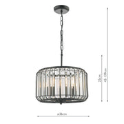 Dar Lighting Naeva 3 Light Pendant Satin Black Crystal • NAE0322