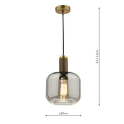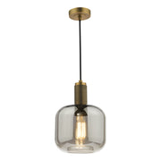 Dar Lighting Nikolas Pendant Natural Solid Brass Smoked Rounded Cuboid Glass • NIK0140-E05