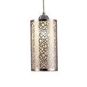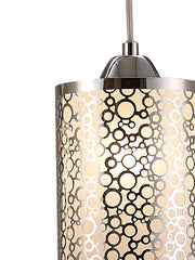 The Charon range utilizes slim cylindrical glass shades. Every glass is frosted and decorated with round chrome patterns. The 3 light line and one of the single pendants displays a pattern consisting of multiple circles in different sizes. The second single pendant has a symetrical oval design contributing variety to the collection. Charon uses E27 lampholders and takes 60W maximum lamps.