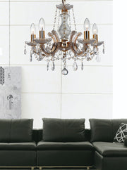 Deco Gabrielle Chandelier With Glass Sconce & Glass Droplets 5 Light E14 Polished Chrome Finish • D0020