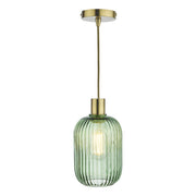 Dar Lighting Sawyer Easy Fit Pendant Green Ribbed Glass • SAW6524