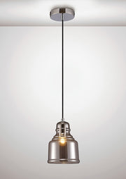 Deco Ariel Single Bell Pendant 1 Light E27 Polished Chrome/Smoke Glass • D0100