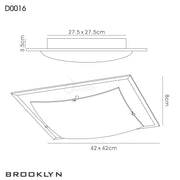 Brooklyn is range of flush ceiling lights with round fittings availbale in a 2 and 3 light and one square fixture available in a 3 light. Each fitting has a Polished Chrome back plate and a central frosted glass to match the same shape as the back plate either square or circular. The frosted glass conceals the E27 lampholders that take a maximum 60W lamp.