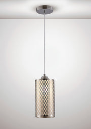 Deco Charon Single Oval Pattern Pendant 1 Light E27 Polished Chrome • D0132