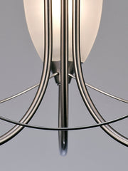 Cooper is a range with great universal appeal making it an extremely popular design. Delicate strands of metal create an interesting framework leading around the outside of the light and joining each arm beneath the glass. All items are finished in a contemporary satin nickel finish and glass opal shades.