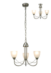 Deco Cooper Ceiling 3 Light Pendant Convertible to Semi FlushE14 Satin Nickel/Opal Glass • D0042