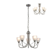 Deco Cooper Ceiling 5 Light Pendant/Semi Flush Convertible E14 Satin Nickel/Opal Glass • D0236