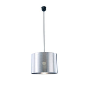 Deco Dako Black Pendant 1 Light E27 With 350 x 250mm Metallic Chrome Finish Cylinder Shade, c/w Ceiling Bracket • D0258