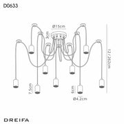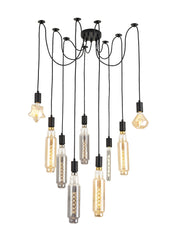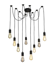 Deco Dreifa 2.5m Pendant, 9 Light Black/Black Cable, E27 Max 60W, c/w Distribution Box & Cable Support Brackets • D0633