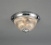 Deco Macy IP44 2 Light E14 Flush Ceiling Light, Polished Chrome With Clear Ribbed Glass • D0404