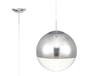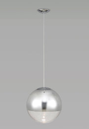 Deco Miranda Large Ball Pendant 1 Light E27 Polished Chrome Suspension With Mirrored/Clear Glass Globe • D0653