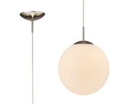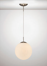 Deco Miranda Medium Ball Pendant 1 Light E27 Satin Nickel Suspension With Frosted White Glass Globe • D0123