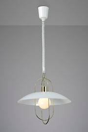 Deco Riva Rise & Fall Pendant 1 Light E27, Polished Brass/Opal White Glass Shade • D0266