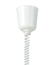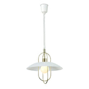 Riva combines unique contrasting components to produce a distinctive, modern collection of E27 single rise & fall pendants. The suspension is fashioned to mimic a traditional coiled phone wire, this then leads to the framework which mirrors a birdcage shape surrounding the lampholder. The centre of this framework is then encircled by an opal glass, fixed in a downward direction, shaped like a shallow dish. These pendants are available in five colour finishes; matt black, matt white, antique brass, polished brass and polished chrome ensuring Riva has a suitable pendant for any room decor.
