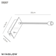Winslow offers a collection of flexible arm wall lamp reader lights, each with a rectangular back plate and visible switch. The flexible arm protrudes from the top of the plate and leads to the oval or cylindrical shaped 3W spotlight. The light from the integral LED's is dispersed at a 45 degree angle. Available in two designs and three colour options; polished chrome, antique brass and satin nickel, this collection provides an array of options suitable for reading purposes or simply a focused illumination.
