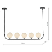 Dar Lighting Cradle 5 Light Bar Pendant Matt With Opal Glass • CRA0522-02