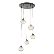 Dar Lighting Federico 5 Light Cluster Pendant Black Clear Ribbed Glass • FED0522-08