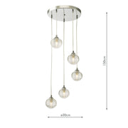 Dar Lighting Federico 5 Light Cluster Pendant Polished Chrome Clear Ribbed Glass • FED0550-08