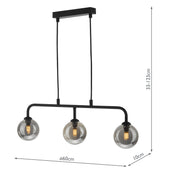Dar Lighting Feya 3 Light Bar Pendant Matt Black Smoked Glass • FEY6222-01
