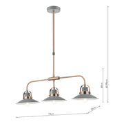 Dar Lighting Liden 3 Light Bar Pendant Graphite Copper • LID0339