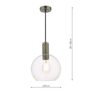 Dar Lighting Nikolas Pendant Antique Chrome Round Clear Glass • NIK0167-E03