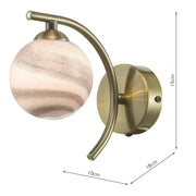 Dar Lighting Atiya Wall Light Antique Brass With Planet Style Glass • ATI0775-07