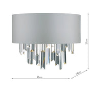 Dar Lighting Halle 2 Light Wall Light Grey Shade & Crystal • HAL0939