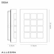 Allegra is a range of two IP44 rated wall lights, suitable for outdoor use, each with 14W 4000K integral LED's. Both wall lights are curved rectangular shape that fits flush to the wall. These wall lights combine frosted polycarbonate diffuser with a sleek stainless steel frame. The rectangular pattern design uses both colour finishes to create a horizontal block effect, whilst the second design layers a square grid framework over the opal diffuser.