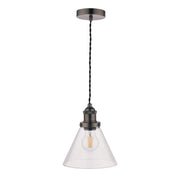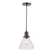 Laura Ashley Isaac Pendant Industrial Nickel Glass • LA3742245-Q