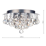Dar Lighting Pluto 3 Light Flush Polished Chrome Crystal Glass Droppers • PLU5250