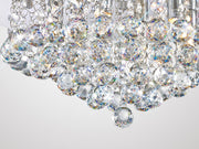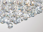 The Dahlia range is a stylish collection of four round flush ceiling lights decorated with rings of clear crystal strands and clear crystal spheres. All fittings take G9 lamps. Both the 4 light and 6 light are available in either Polished Chrome or French Gold making it adaptable to any modern low ceiling room.