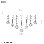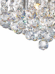 The Dahlia range is a stylish collection of four round flush ceiling lights decorated with rings of clear crystal strands and clear crystal spheres. All fittings take G9 lamps. Both the 4 light and 6 light are available in either Polished Chrome or French Gold making it adaptable to any modern low ceiling room.
