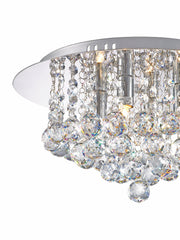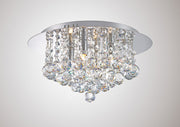 Deco Dahlia Flush Ceiling, 350mm Round, 4 Light G9 Polished Chrome/Crystal • D0002