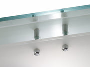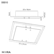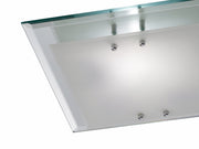 The Mira range consists of 2 and 3 light square flush fittings each taking E27 maximum 60W lamps. Mira layers two different sized glass, the first is a large square mirror plated glass and the second a smaller frosted glass that sits central beneath it concealing the lamps holders. The frosted glass is held on with 4 smooth rounded bolts situated with two on either side of the glass panel.