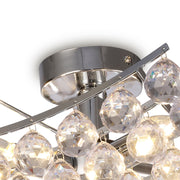 An extravagant, stunning yet affordable polished chrome fitting filled with an abundance of facetted acrylic spheres.  This semi flush fixture which creates a basket of spheres has been designed in order to create an exquisite sheet effect. These spheres obscure the 4 x E14 lampholders throwing intricate shadows when illuminated. Rayne is a desirable cost effective chandelier.