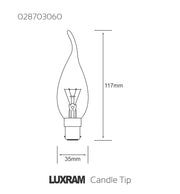 Luxram Candle Tip B15D Clear 60W Incandescent/T • 028703060