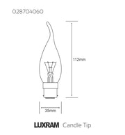 Luxram Candle Tip B22 Clear 60W Incandescent/T • 028704060