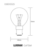Luxram Golf Ball B15D Clear 25W Incandescent/T • 038015025
