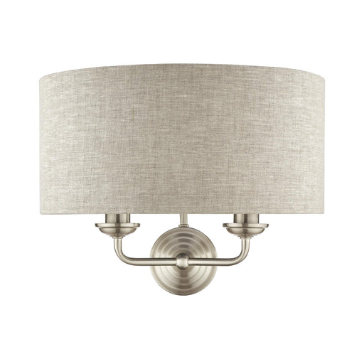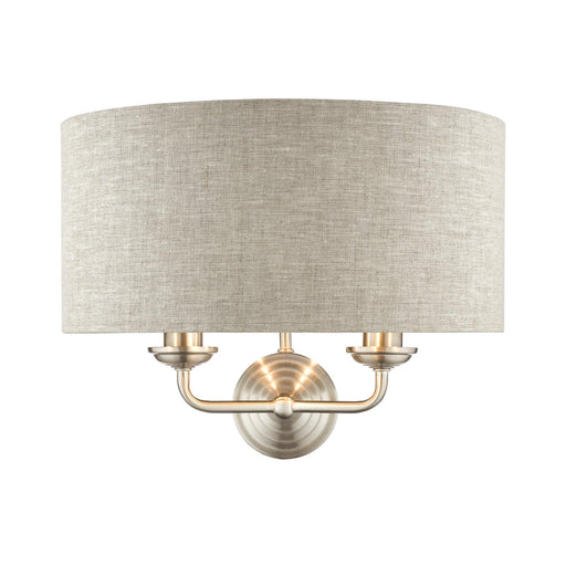 View full detailsLaura Ashley Sorrento 2 Light Wall Light Satin Nickel With Natural Shade • LA3727712-Q