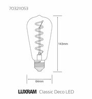 Luxram Classic Deco LED Rustica Tradition Tip/S ST64 ST64 E27 Dimmable 5W 1800K Extra Warm White, 280lm, Gold Finish, 3yrs Warranty • 703211053