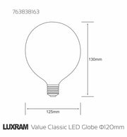 Luxram Value Classic LED Globe 120mm E27 8W 1055lm Warm White 2700K Colour-Box (Frosted) • 763838163