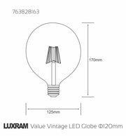Luxram Value Vintage LED Globe 120mm E27 8W 2200K, 630lm, Gold Glass • 763828163