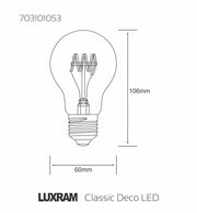 Luxram Classic Deco LED GLS/W E27 Non-Dimmable 5W Warm White 1800K, 280lm, Gold Finish, 3yrs Warranty • 703102053