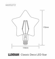 Luxram Classic Style LED Star E27 Dimmable 220-240V 4W 2100K, 200lm, Amber Finish, 3yrs Warranty • 4600272