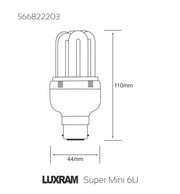 Luxram Supermini 6U B22 6400K 20W Compact Fluorescent • 566822203